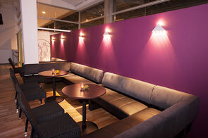 Die Bar bildet mit zahlreichen Sitzplätzen den gemütlichen Mittelpunkt nicht nur in der Pause. Großzügige Toiletten- und Umkleideräume sind selbstverständlich vorhanden.